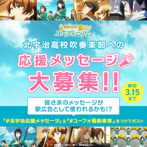 - ハッシュタグ「#北宇治応援メッセージ」と「#ユーフォ最終楽章」を付けて、ご投稿ください。