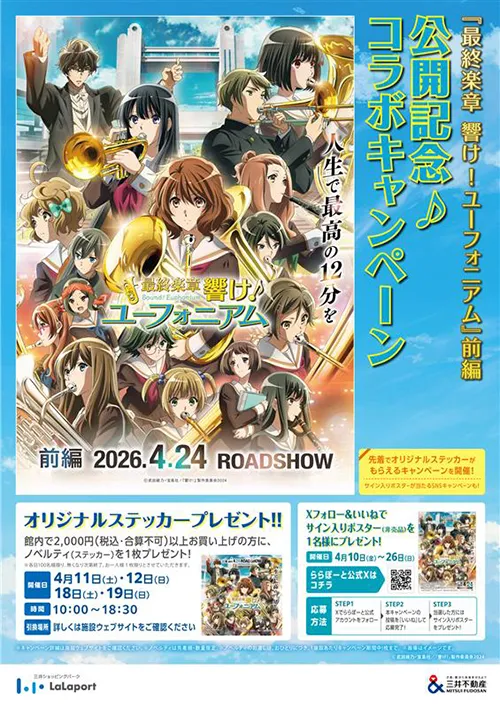 三井ショッピングパーク ららぽーとと、『最終楽章 響け!ユーフォニアム』のタイアップが決定しました!