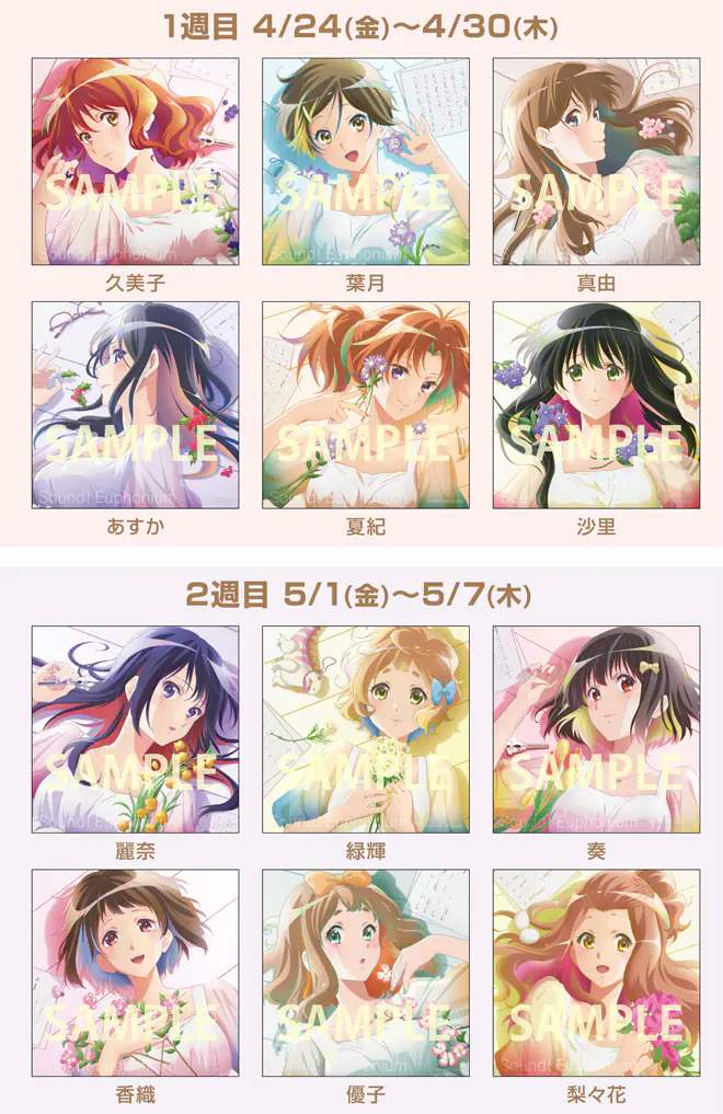 1週目:久美子・葉月・真由・あすか・夏紀・沙里2週目:麗奈・緑輝・奏・香織・優子・梨々花